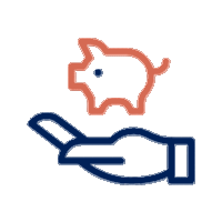 Smiling woman in business attire leaning on table with piggy bank