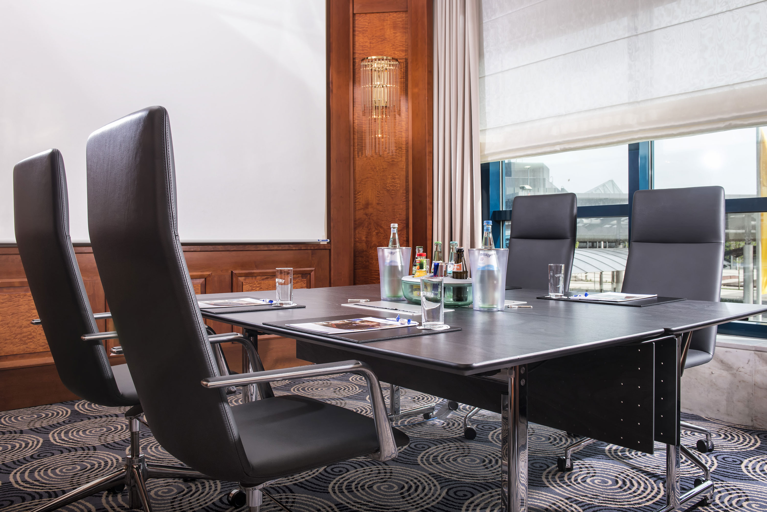 For meetings and business discussions, our two multimedia rooms with docking stations at each seat or our exclusive boardroom with airport views are ideal. Looking for something truly special? We are happy to bring your ideas to life—whether it’s a themed menu or an ice sculpture featuring your company logo.