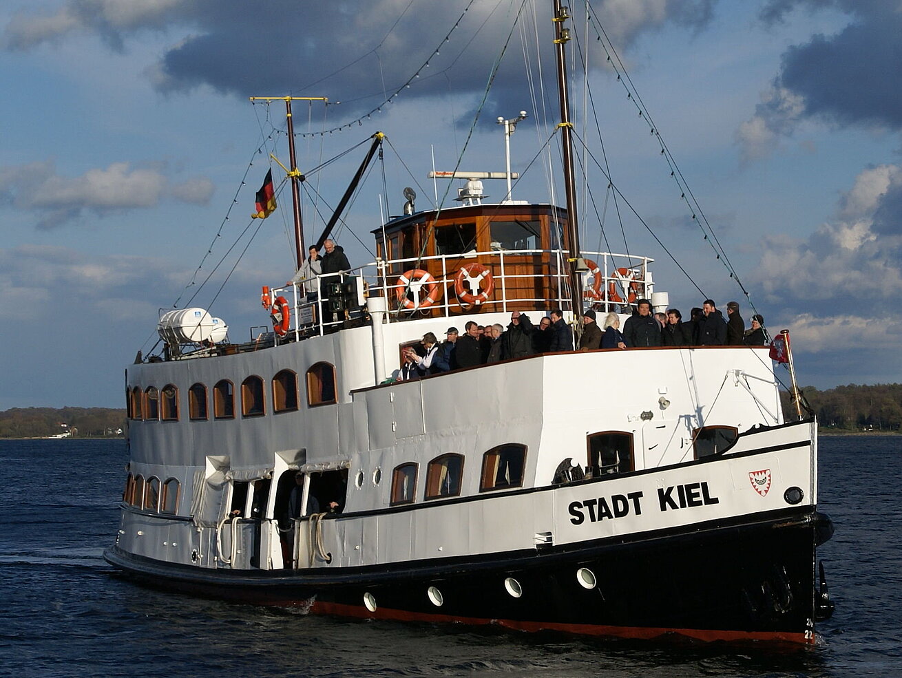 The "Stadt Kiel" motor vessel is a historic ship, recognised as a technical cultural monument and listed in Schleswig-Holstein’s heritage register. Built in 1934, this traditional ship continues to sail across the Kiel Fjord, and you can contribute to its preservation.